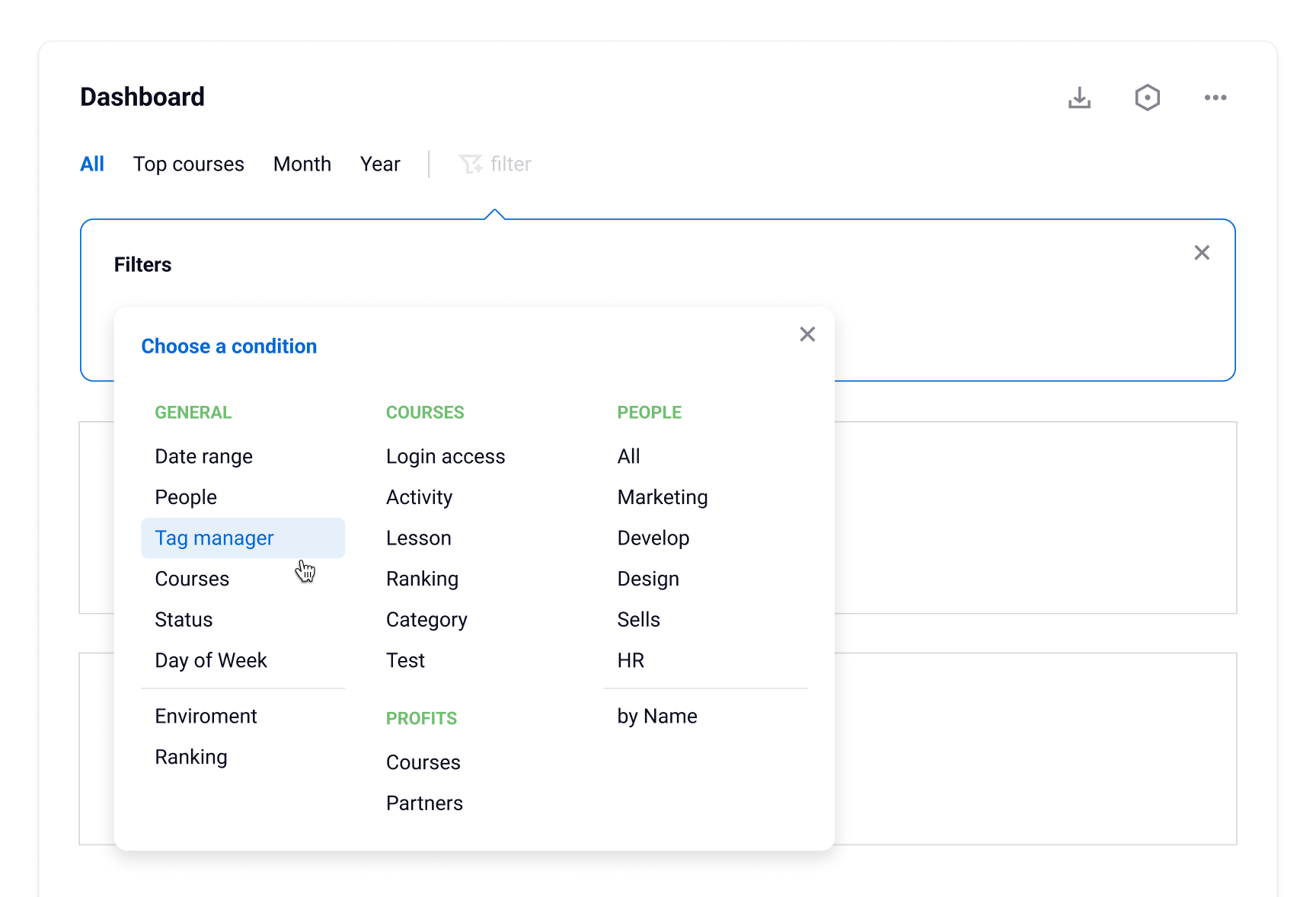 A filter is like a tool used on platforms, eCommerce sites & websites to choose or exclude specific content or information based on criteria you set. For example, you can use a filter on an eCommerce site to show only products that cost less than a certain amount or that belong to a particular category. CallToInspiration has some examples of filters that can help you find ideas and inspiration for your projects.